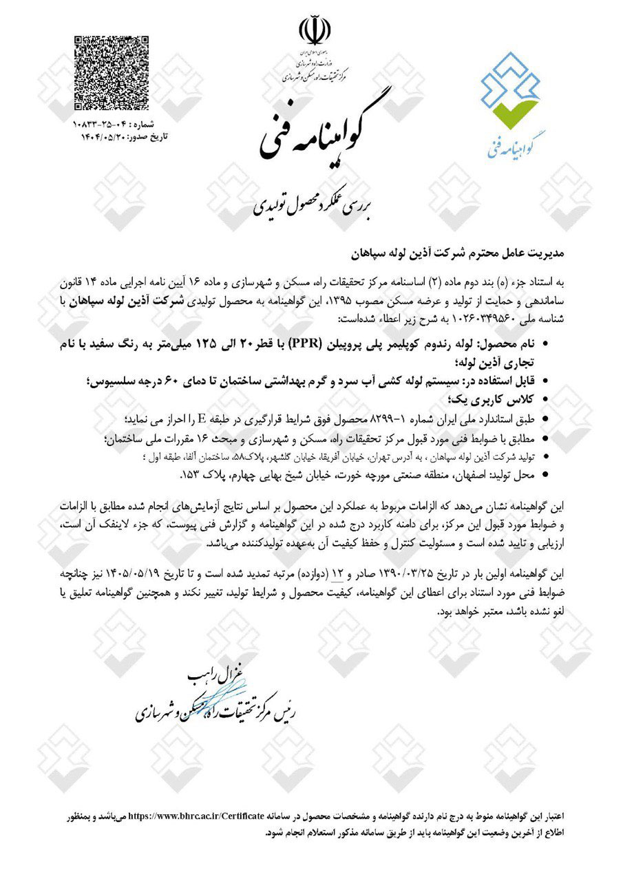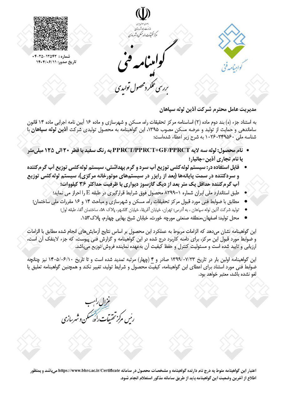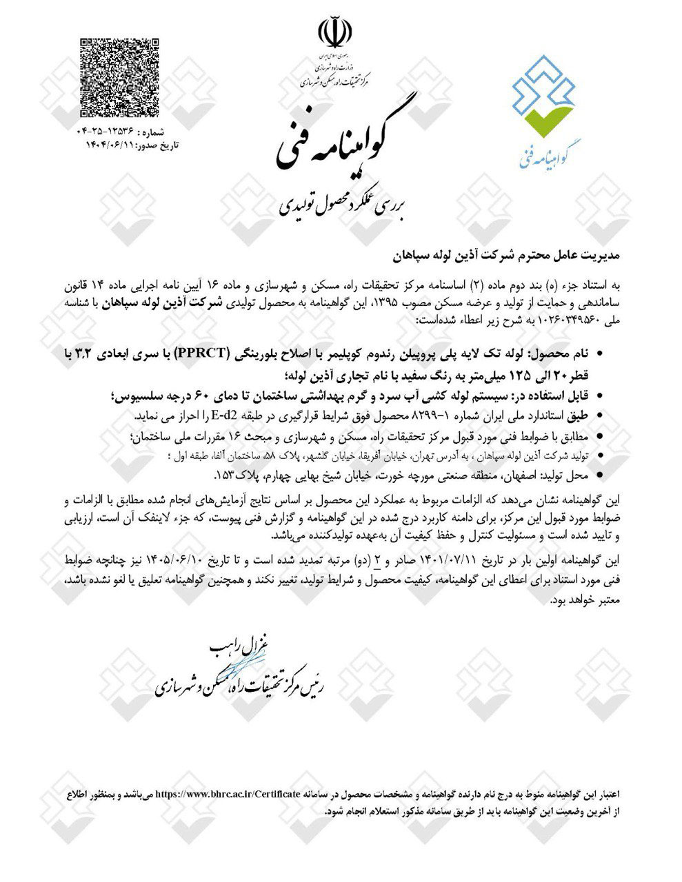 | استانداردهای ملی و بین المللی | ISO 21003-2 & ISO 15874-2 DIN 8077/8078 INSO 12753-2 & INSO 6314-2 |